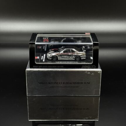 Nissan Skyline GT-R R34 Nismo R-Tune Chrome Collection 1:64 Diecast Model Car by INNO64 – Chrome Silver Limited Edition