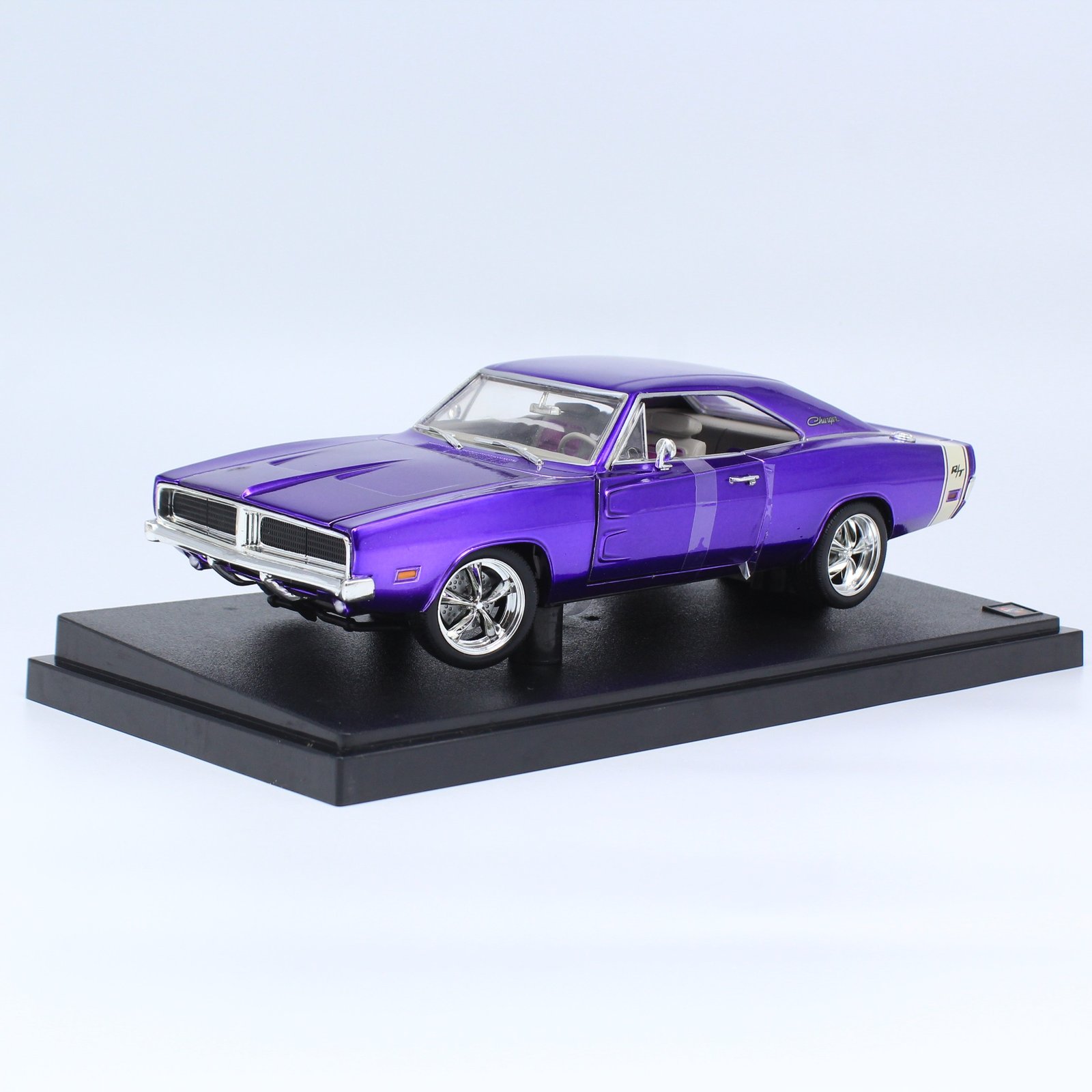 A premium 1:18 scale diecast model of the legendary 1969 Dodge Charger in eye-catching violet, crafted by Hot Wheels. Perfect for collectors and classic muscle car enthusiasts.