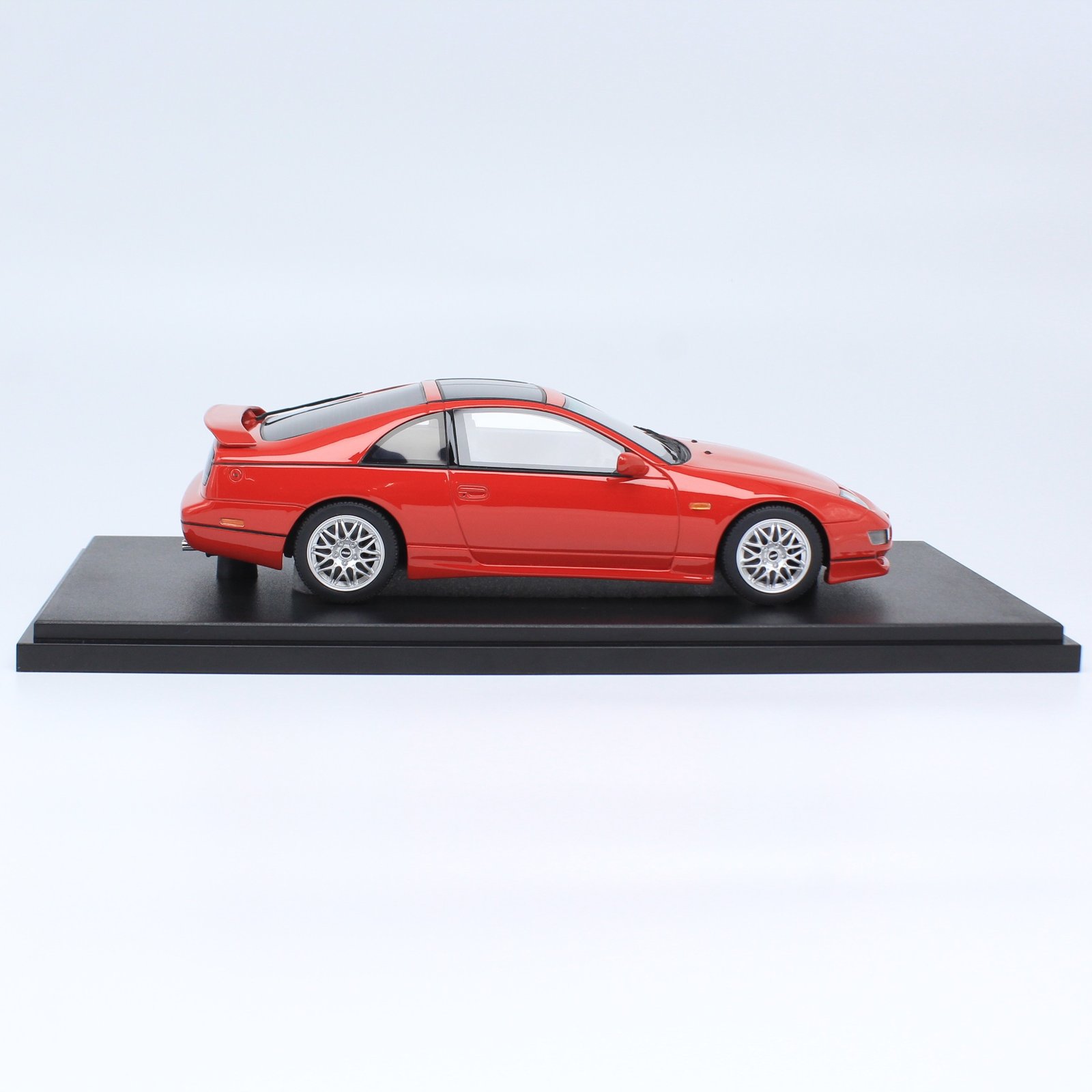 Finished in a bold red, this model highlights the aggressive stance and aerodynamic design that made the Fairlady Z a legend in the JDM world. Kyosho’s exceptional craftsmanship is evident throughout, from the finely sculpted bodywork to the intricately detailed interior.
