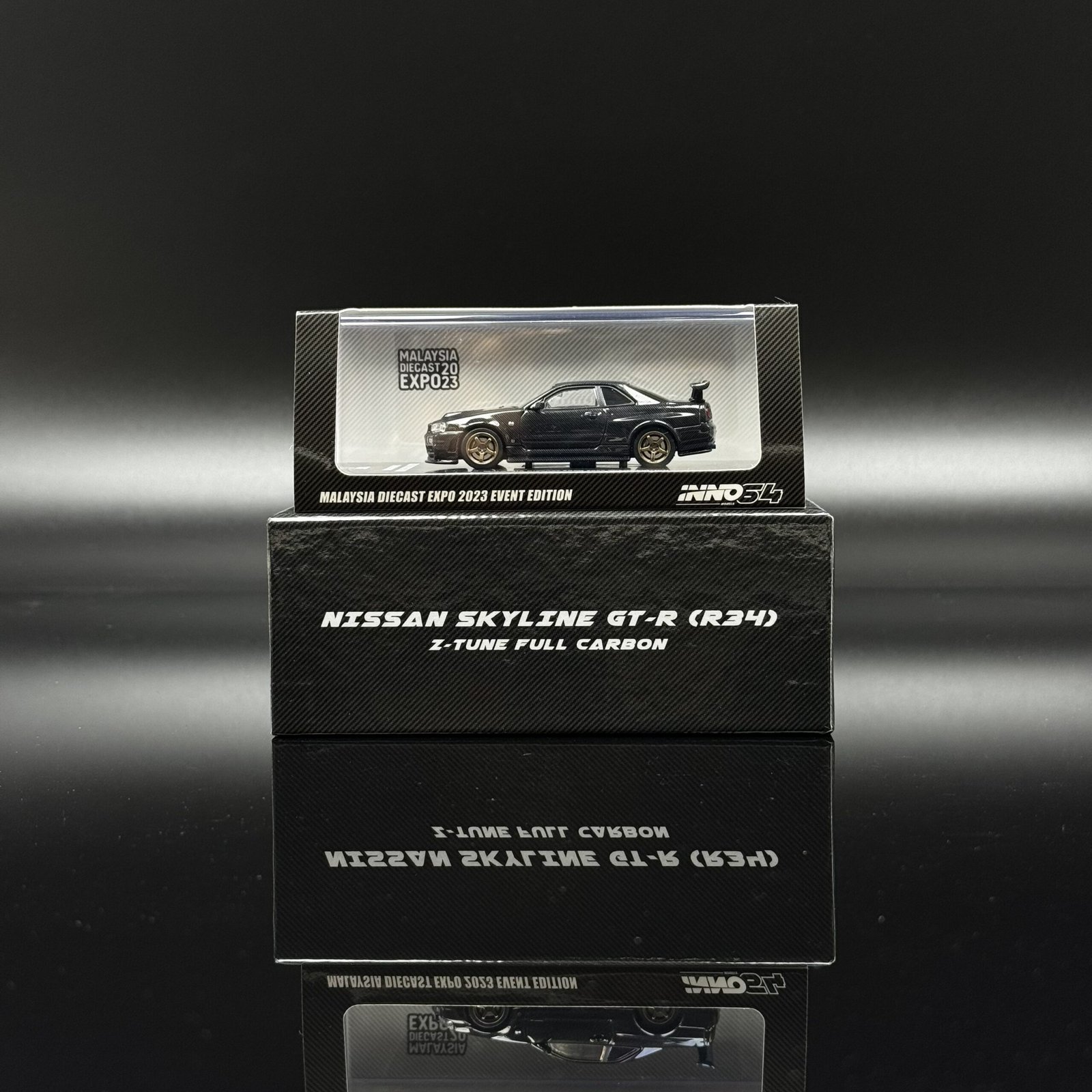 Nissan Skyline GT-R R34 Z-Tune Full Carbon 1:64 Diecast Model Car by INNO64 – Carbon Black Limited Edition